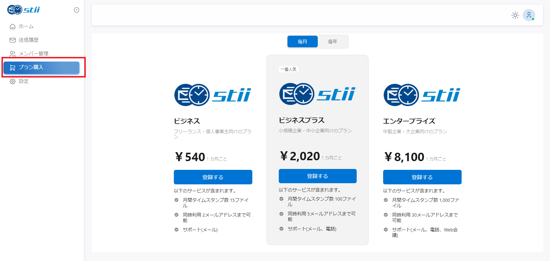 stii タイムスタンプサービス 月額・年額プラン購入方法