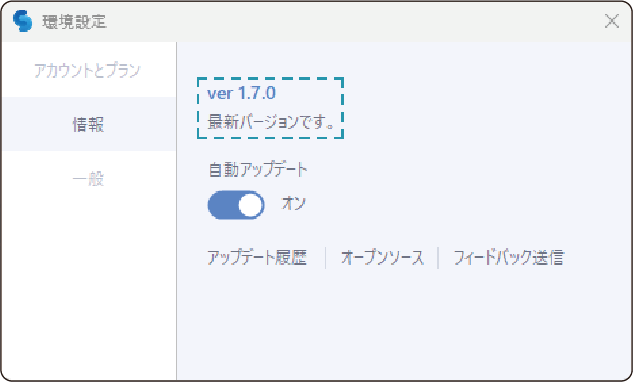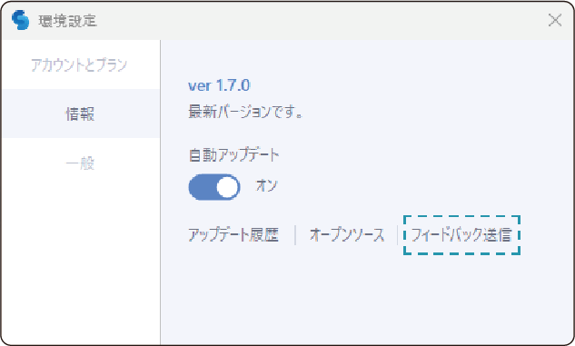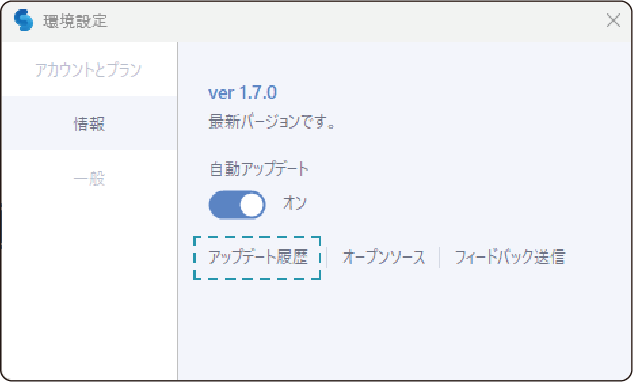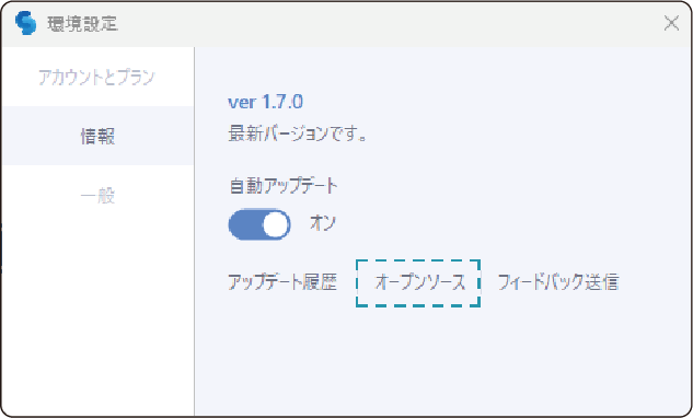 アップデート履歴およびオープンソースの確認、フィードバック送信