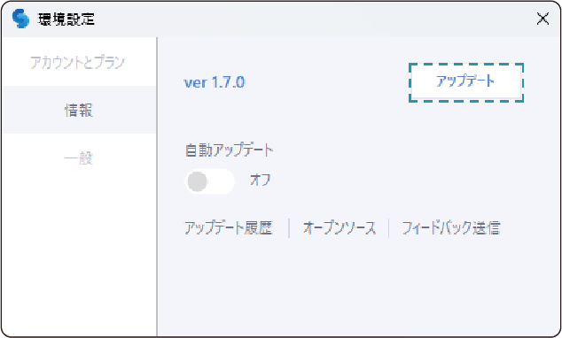 2. 現在のバージョンを確認できます。古いバージョンの場合、アップデートボタンが表示されます。