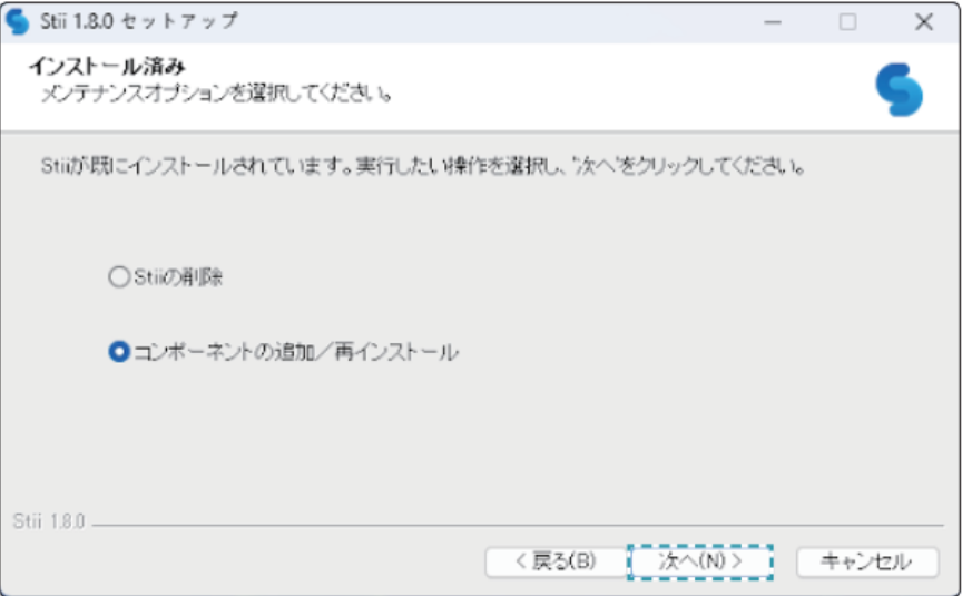 3.コンポーネントの追加/再インストールを選択した後、次へをクリックします。