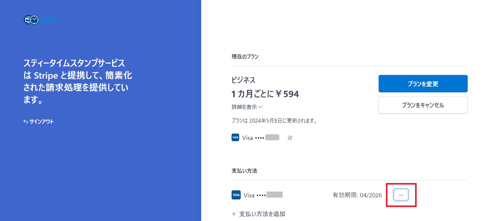 2.支払い情報>有効期限の右にあるボタンをクリックします。