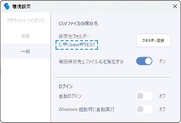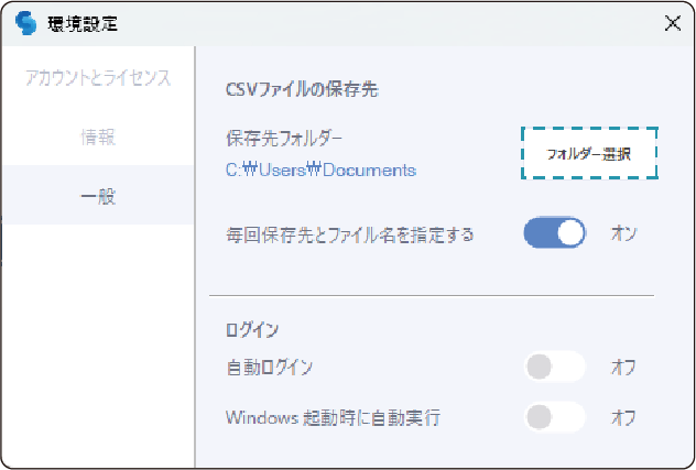 2. フォルダー選択をクリックし、CSVファイルの保存先を変更します。