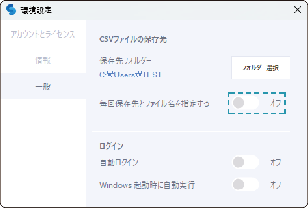 2. 毎回保存先とファイル名を指定するオプションをオン/オフに設定できます。